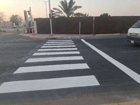 Planning asphalt roads, parking spaces, arrows, and signs for people with disabilities using hot thermoplastic materials and cold epoxy paints using the latest road spraying machines