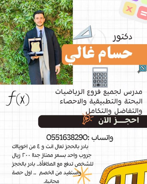 مدرس خصوصي رياضيات بحثة وتطبيقية واحصاء بأسعار ممتازة لا تترد