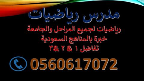 مدرس رياضيات ب جدة خبرة لجميع المراحل (ابتدائي متوسط ثانوي) جامعي (تفاضل 1 & تفاضل 2 & تفضل 3) كفاءة في توصيل المعلومة وتبسيطها