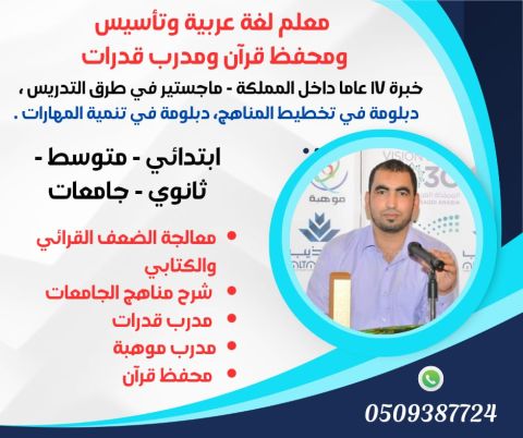 معلم تأسيس ومتابعة وتحفيظ قران جميع المواد للمراحل الابتدائية وزي صعوبات التعلم متواجد بجد