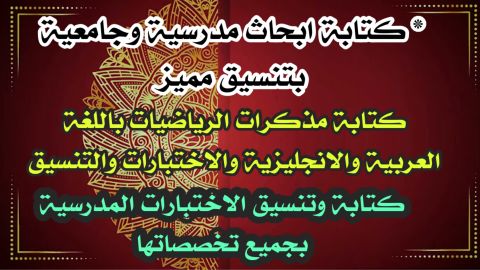 كتابة امتحانات رياضيات باللغتين العربية والانجليزية وجميع المواد والتخصصات وكتابة المذكرات التعليمية وتنسيق أي أوراق بتنسيق مميز وعمل أبحاث مدرسية وجامعية وتوصيلها لأي مكان في مكة المكرمة وارسالها بأي صيغة word أو pdf