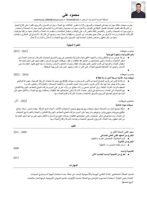 مندوب مبيعات ذو خبرة في مجال البيع والتسويق والترويج المبيعات وإدارة الاعلان والأعمال مهارات قيادية محاسبية ومالية متميز في اجهزة النظام المبيعات قدرة متميزة على تحقيق الأهداف والعمل تحت ضغط وجلب العملاء الجدد وفتح أسواق جديدة متاح الانضمام الى فرصة عمل مناسبة إقامة سارية رخصة قيادة سارية مصري