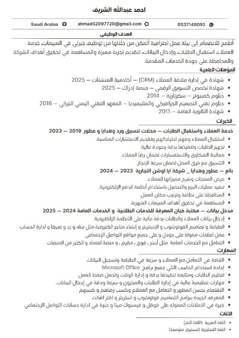 Professional in sales, customer service, and data entry, with experience in accurately coordinating and executing orders, and professionally dealing with clients. Expert in computers and all Microsoft programs, skilled in organizing work and managing time, seeking to join a professional environment to contribute to achieving company goals and enhancing customer satisfaction