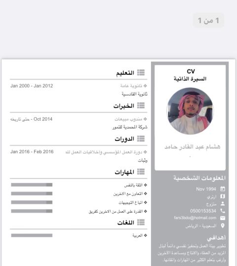 الجنسية مصرية معي إقامة مساعد اداري عندى خبرة السكرتارية والموارد البشرية ومعرفة المنصات الحكوميه قوى مقيم التأمينات مدد ابشر إيجار التأمين الطبي السعودي للأعمال بلدي وغيرها من المنصات وسبق لي الشغل أيضا بالمبيعات الموقع الدمام