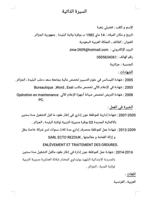 ابحث عن فرصة عمل مناسبة في احدى الجهات أو الشركات حيث امتلك خبرة واسعة في المجالات التالية الإدارة وشؤون الموظفين إدارة ملفات الموظفين، متابعة الدوام والاجازات، اعداد التقارير الادارية، وتنظيم سير العمل. معرفة تامة بالمنصات الحكومية السعودية مثل قوى، التأمينات الاجتماعية وزارة الموارد البشرية، وغيرها. اجادة تامة لبرامج الأوفيس (Excel - word - PowerPoint) في اعداد التقارير