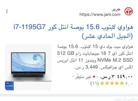 لابتوب هواوي ميت بوك D15 core i7 16 Ram ssd512 شاشة 15.6 شاحن وشنطة وماوس نظيف جدا ويندوز 11 أصلي 2000 ريال التواصل