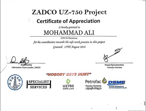 I am Mohammad Ali. I am an experienced electrical technician. I am capable of wiring, DB dressing, cable pulling, cable dressing, termination and electrical conduit PVC and GI, trunking and tray work as far drawing. I have been doing it in Dubai for 12 years and in Saudi Arabia for more than 3 years. And also CCTV camera work