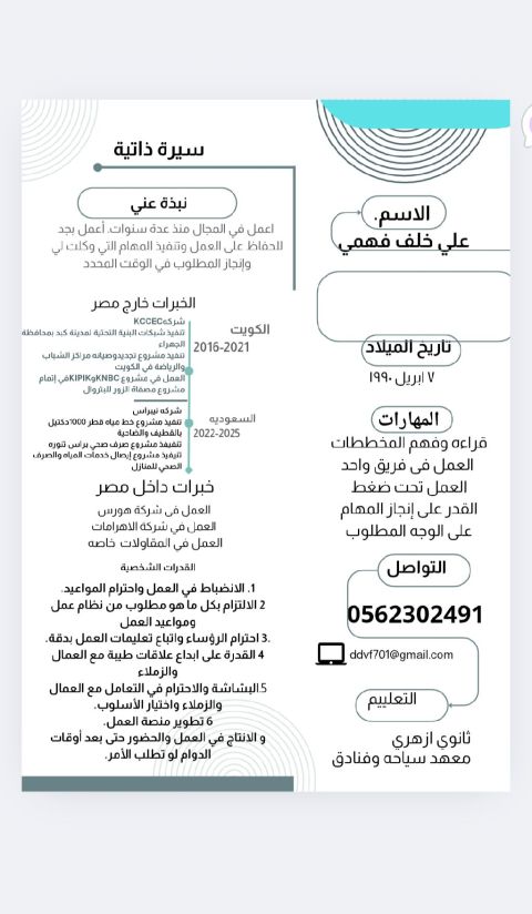 مليس ورئيس عمال خبرة 6 سنوات في شركة العريني للمقاولات تسليم استشاريين ومنهم مكتب سعود كونسلت