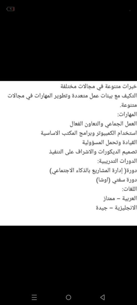 أرغب اعمل في مجال خدمة العملا أو مدخل بيانات ولدي خبرة في ذلك