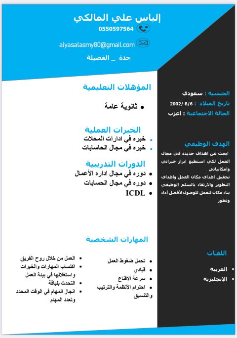 مغربي مقيم في الرياض خبرة 8 سنوات في الاستقبال السكرتارية المهام الادارية والمنصات الحكومية حاليا موظف تسويق وخدمة عملاء في شركة مقاولات في الرياض