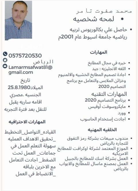 مهندس تصميم داخلي جامعي بكالوريوس خبرة 5 سنوات في التصاميم والاشراف والمبيعات، إقامة قابلة لنقل + رخصة قيادة، متواجد في الرياض
