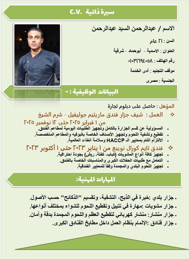 جزار بلدي وافرنجي وشيف مشويات كفته وكباب وفراخ جديد في المملكة، وابحث عن عمل مجزي