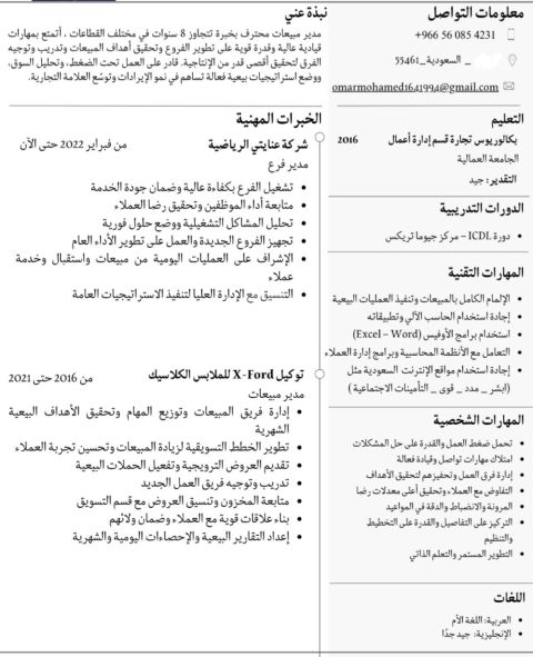 ابحث عن عمل المؤهل بكالوريوس تجارة ادارة أعمال. الإقامة سارية لأكثر من سنة قابلة للنقل. لدى شهادة صحية سارية. الخبرات خبرة أربع سنوات داخل السعودية في الأعمال الادارية وخدمة العملاء والمبيعات والمشتريات والاستقبال والكاشير وبعض العمليات المحاسبية أجيد التعامل على برامج الاكسل والوورد وبعض المواقع السعودية مثل (ابشر. مدد. التأمينات الاجتماعية