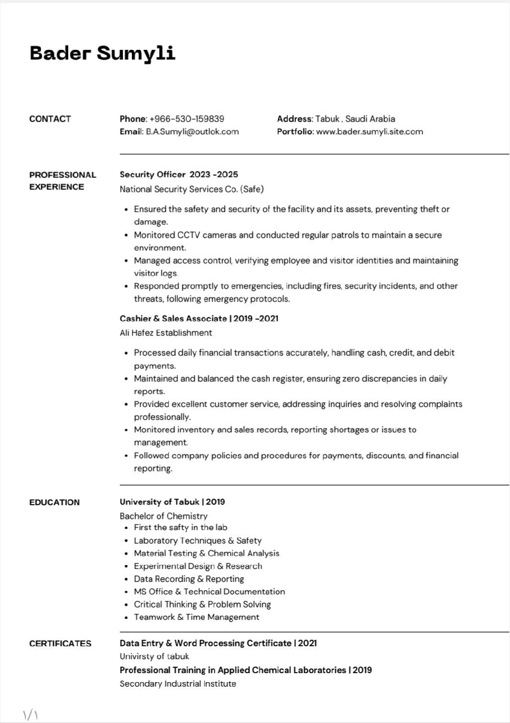 Peace be upon you Saudi citizen I have long experience in management, accounting, marketing, safety, quality and other fields, holds a Bachelor of Chemistry degree, recently obtained the qualification of a Certified Management Consultant from gmci Institut