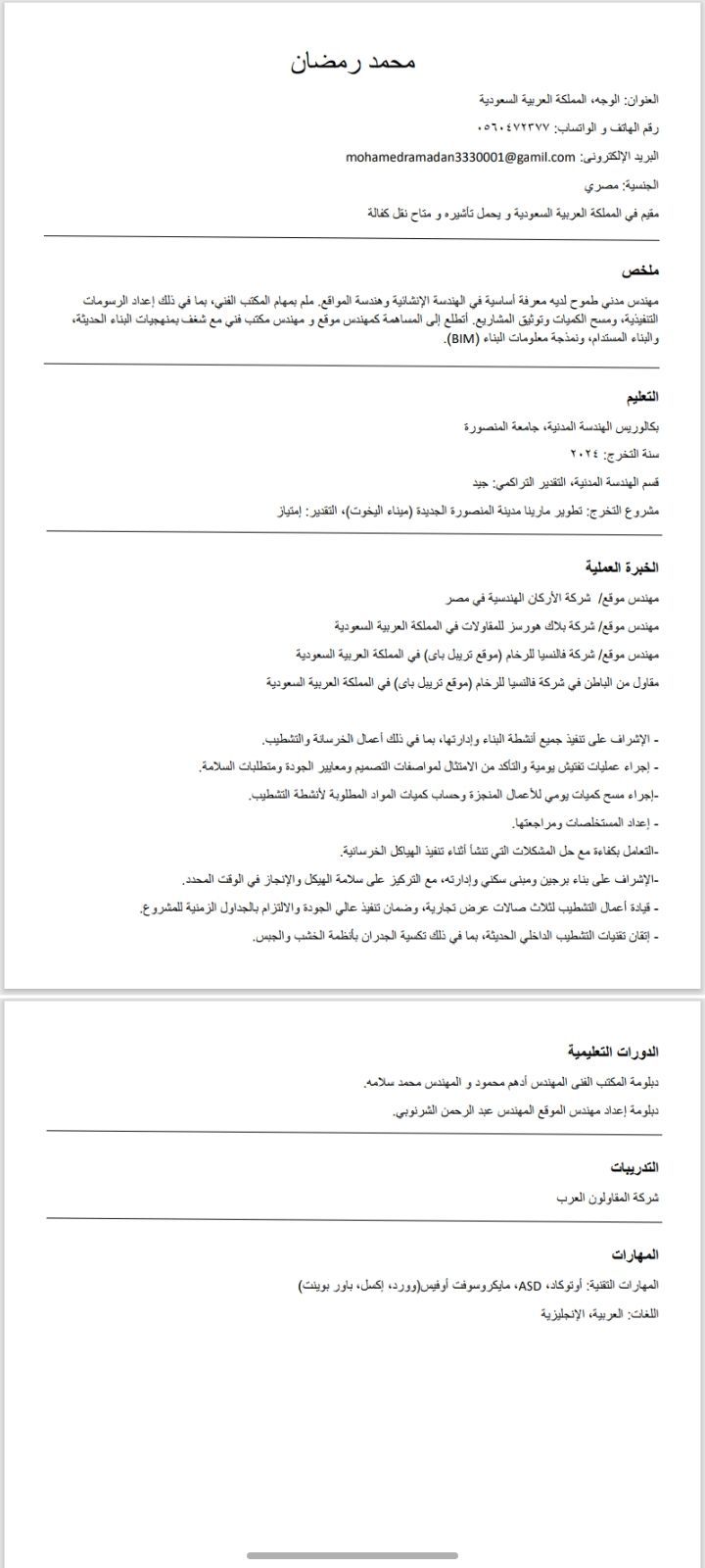 مهندس مدني خريج 2024 ابحث عن فرصة عمل واقامتي سارية