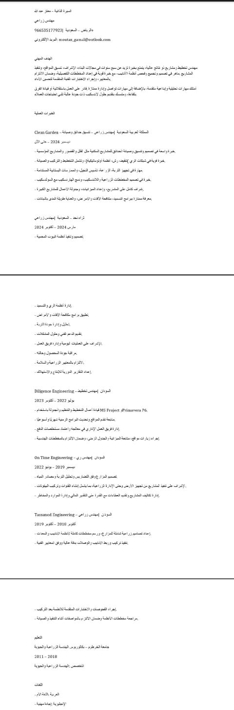 أنا حاصل على درجة البكالوريوس، ولدي خبرة عملية راسخة في القطاع الصناعي والقطاع الانشائي والقطاع اللوجستي، اكتسبت خلالها مهارات مهنية تعزز القدرة على إدارة المهام وتنفيذ الأعمال بكفاءة عالية. ابحث عن فرصة وظيفية أساهم من خلالها في دعم أهداف جهة العمل وتحقيق قيمة مضافة مبنية على المعرفة والخبرة والالتزام