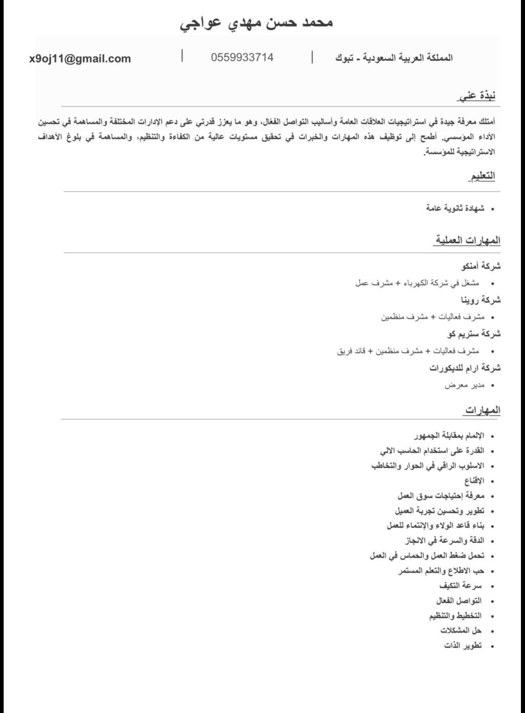 جنسية سعودية ابحث عن عمل في أي مجال كان عندي خبرة في التنظيم والحراسات اتمنىة وقد مسكت اشراف في جميع الوظائف التي عملت بها