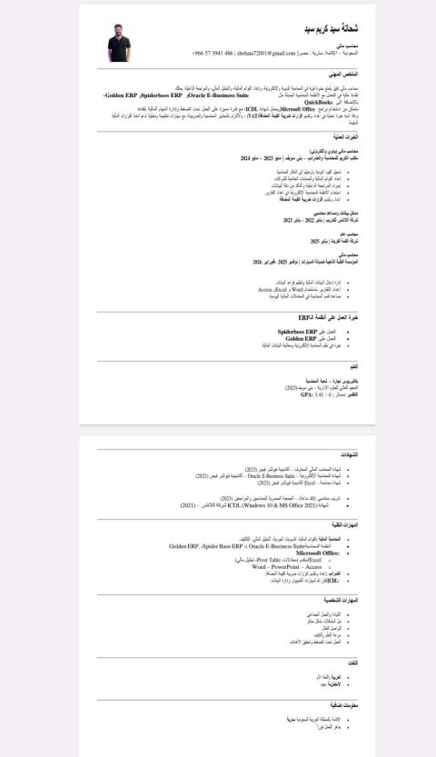 محاسب مالي دقيق يتمتع بخبرة قوية في المحاسبة اليدوية والالكترونية، واعداد القوائم المالية، والتحليل المالي، والمراجعة الداخلية يمتلك كفاءة عالية في التعامل مع الأنظمة المحاسبية الحديثة. للتواصل