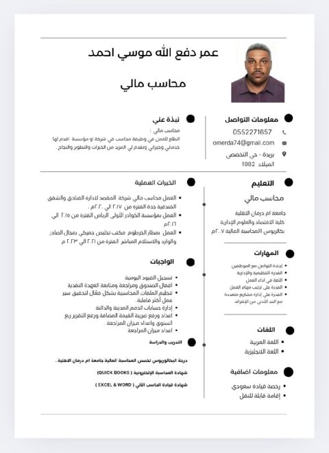 محاسب مالي بخبرة قوية لأكثر من 10 سنوات في إدارة الحسابات، اعداد القوائم المالية، تحليل البيانات المالية، تنفيذ التسويات البنكية وضبط حسابات العملاء والموردين والحسابات العامة خبرة في مهام الاشراف المالي وإدارة فريق المحاسبة مع اجادة التعامل مع أنظمة ERP وبرامج المحاسبة المختلفة. الموقع الرياض، إقامة سارية رخصة قيادة سارية، يوجد سيارة. عضوية الهيئة السعودية للمحاسبين سارية جاهز للانضمام للعمل