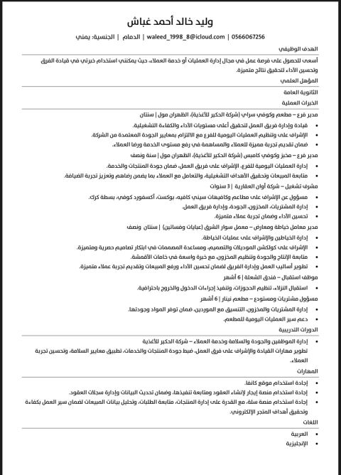 Looking for a job. I have experience in managing cafes or restaurants, having worked with global and local brands. I provide excellent service and manage daily operations efficiently. I also have experience in sewing women'clothing, managing sewing workshops, organizing work with tailors, managing collections, and dealing with designers. I have extensive knowledge of fabric materials, with 3 years