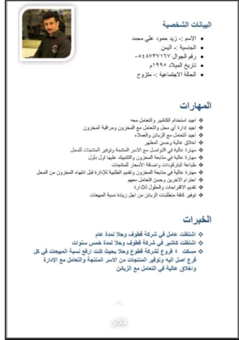 مقيم من الجنسية اليمنيه ابحث عن عمل في مجال السوبر. محلات الملابس عندي خبرة لا تقل عن 3 سنوات