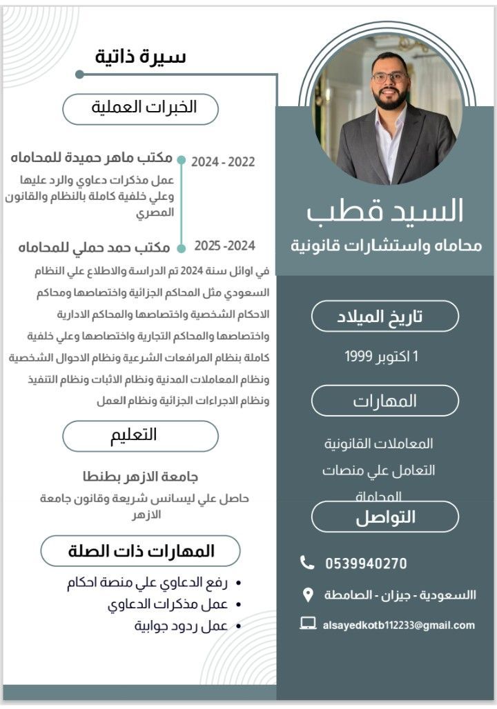 محامي مصري موجود في السعودية ابحث عن وظيفة في مكتب محاماة أو شركة محاماة أو في شركة على خلفيه كاملة بالنظام السعودي والقانون السعودي وتعامل مع كافة المنصات الحكومية