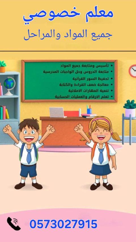 التعليم هو نهضة الأمم وبناء العقول نحو مستقبل أفضل لطفلك وبناء شخصيته وتنمية مهاراته عن طريق استراتيجيات التعلم النشط والتفكير الناقد معلم تأسيس للصفوف أول وثاني وثالث ومتابعة الصفوف العليا وتعليم القراءة والكتابة وصعوبات التعلم