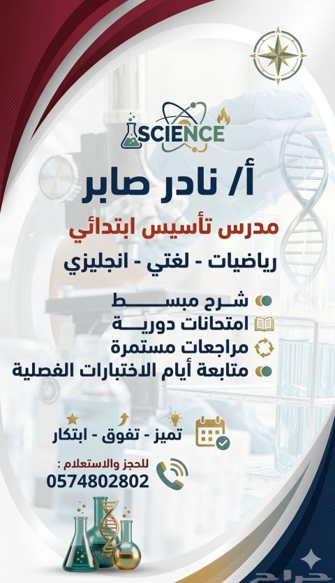 معلم ذو خبرة في تدريس مادة (لغتي - اللغة الانجليزية - الرياضيات) للمرحلة الابتدائية متاح لتقديم دروس خصوصية (حضوري في تبوك / أو اونلاين)