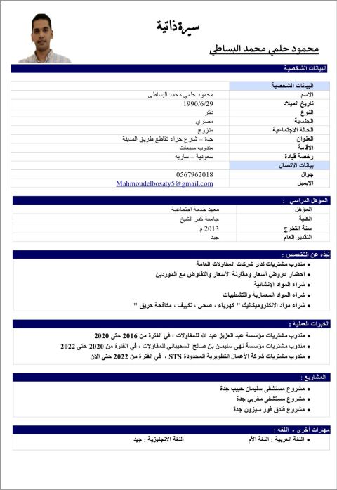 مشرف مبيعات ذو خبرة تزيد عن 10 سنوات في مجال المبيعات، منها 8 سنوات داخل السعودية. امتلك خبرة واسعة في إدارة فرق المبيعات وتحقيق الأهداف البيعية ووضع الخطط والاستراتيجيات التي تضمن نمو الايرادات وزيادة الحصة السوقية. لدي مهارة عالية في بناء العلاقات مع العملاء، وتحليل الأسواق، وتحفيز الفريق لتحقيق أفضل أداء. أسعى دائما لتقديم قيمة مضافة للشركة من خلال تحسين العمليات ورفع كفاءة العمل