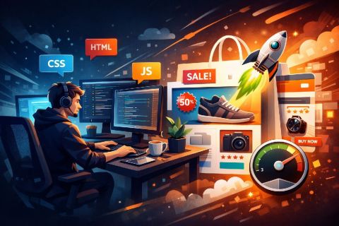 Turn your store banners from heavy images into interactive coded banners Professional banner design using HTML/ CSS/ JS lightweight, fast - loading, multilingual, and built to boost engagement and sales instead of slow, low - quality static images. Enhance your Salla store UI & deliver a stronger user experience Plus Smart management of inventor