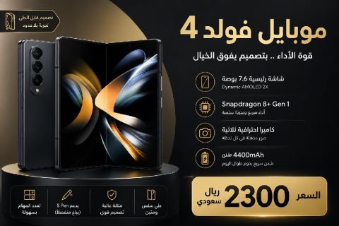 For sale Samsung Galaxy Z Fold 4 (Excellent Condition) Storage 256 GB/ 12GB Ram Processor Snapdragon 8 + Gen 1 Screens 7.6 "Main/ 6.2" Cover (120 Hz) Camera 50MP + 3x Optical Zoom Durability IPX8 Water Resistance & Armor Aluminum Includes USB Cable + 2 Cases Price 2300 SAR (Was 2500) Contact
