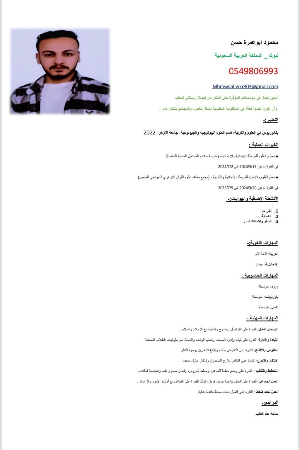 بكالوريوس في العلوم والتربية ابحث عن عمل تدريس في مدارس أو خاص معلم مادتي العلوم والأحياء المرحلة الابتدائية والاعداديه والثانوية
