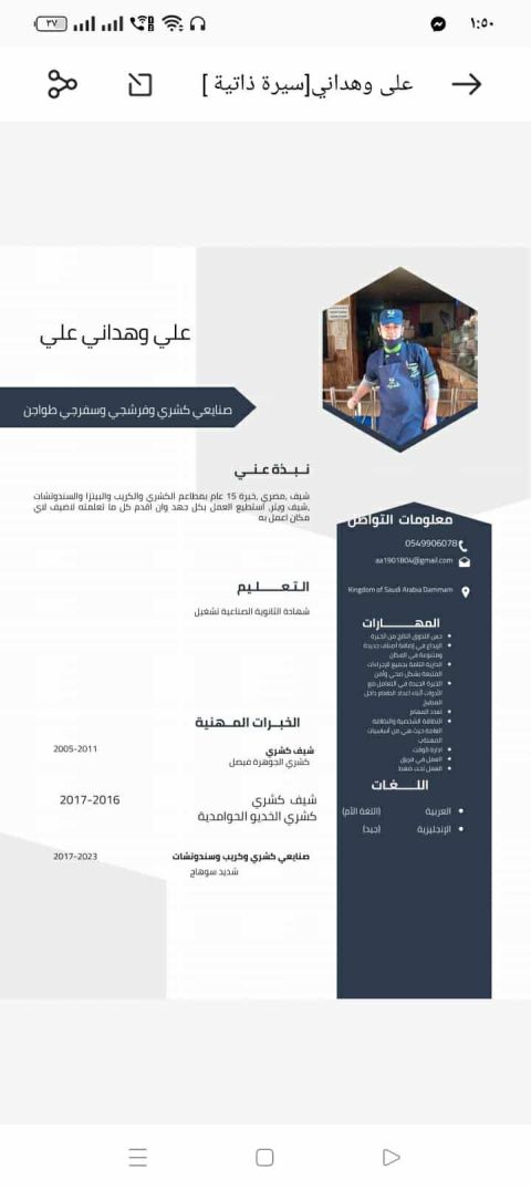 شيف عمومي تونسي الجنسية بالغ من العمر 33 سنة لي خبرة 15 سنة في مجال أفنادق والمطاعم منهم 6 سنوات داخل المملكة لي ذوق عالي في الأكل معي نقل كفالة ومتواجد في الخبر