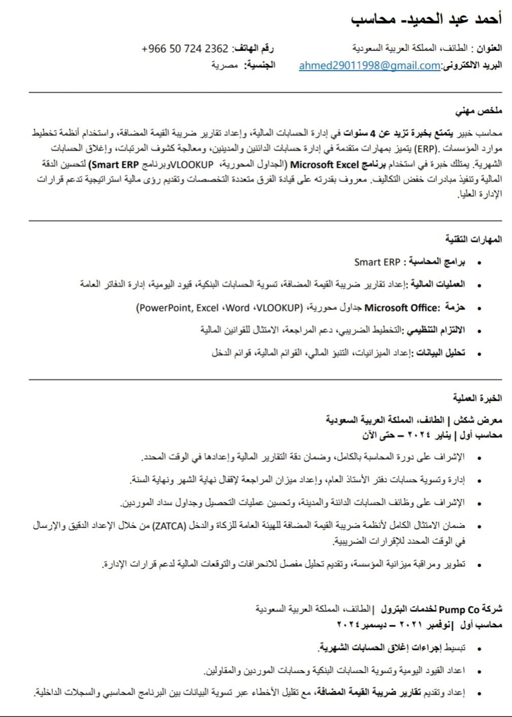 أحمد عبد الحميد خبرة في المجال أكثر من 4 سنوات