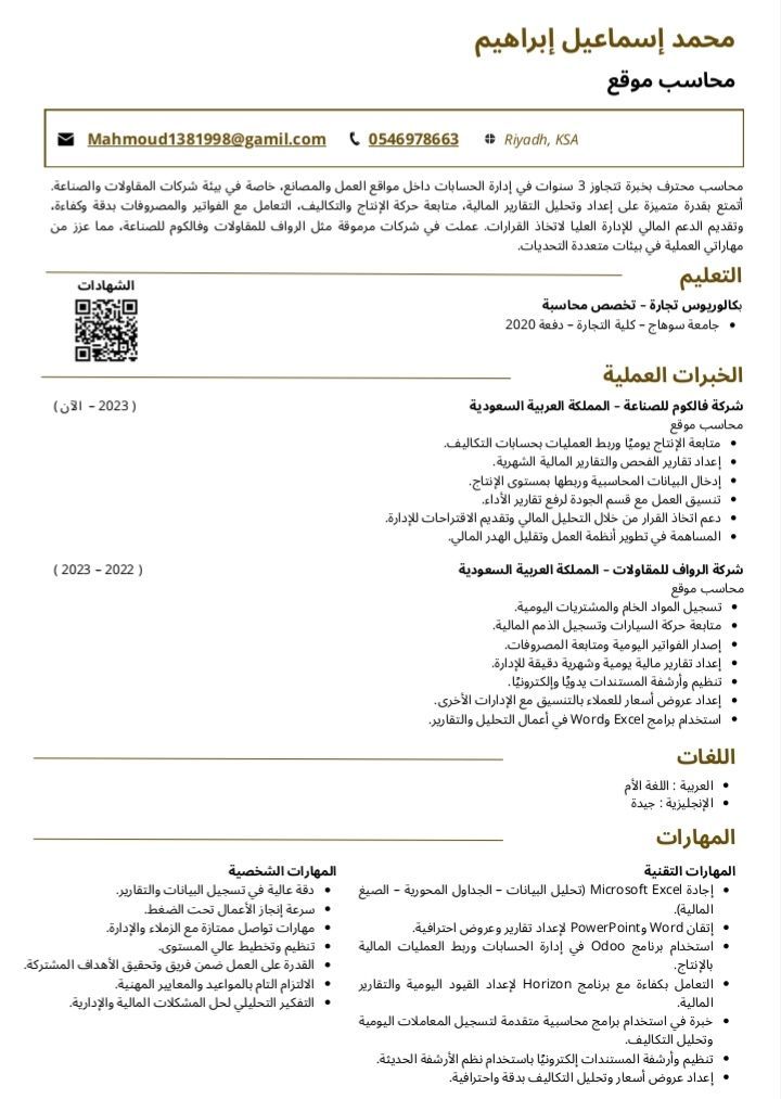 محاسب مصري حاصل على بكالوريوس محاسبه خبرة ثلاث سنوات في ادارة الحسابات داخل مواقع العمل والمصانع خاصه في بيئة شركات المقاولات والمصانع. مرفق أل CV