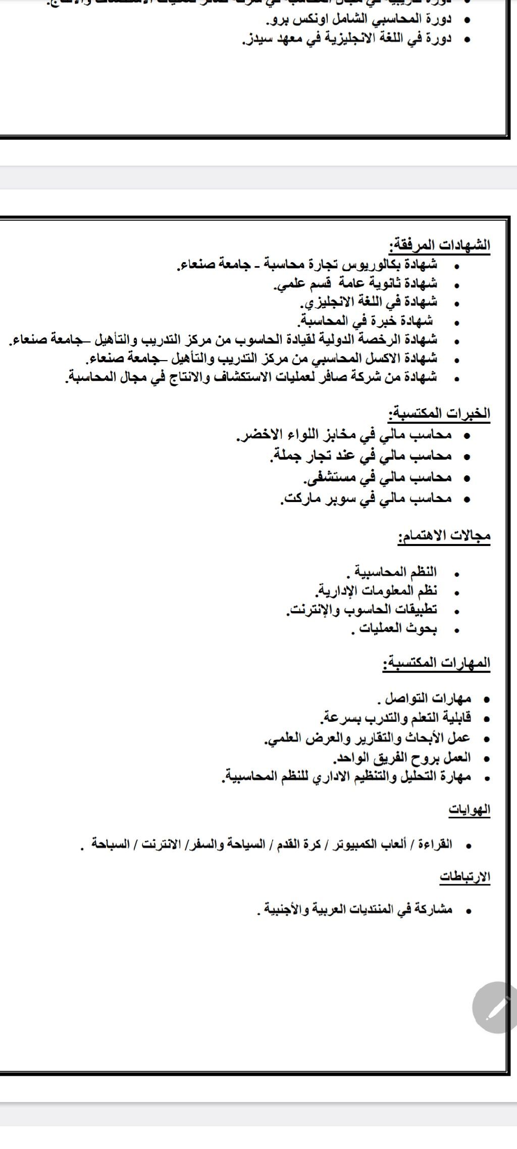 أنا يمني مقيم جامعي عندي بكالوريوس محاسبة جامعة صنعاء محاسب لسه مبتدئ بدور عن عمل بيشتغل مدخل بيانات أو محاسب أو اداري اشتغلت بشركة صافر لانتاج النفط
