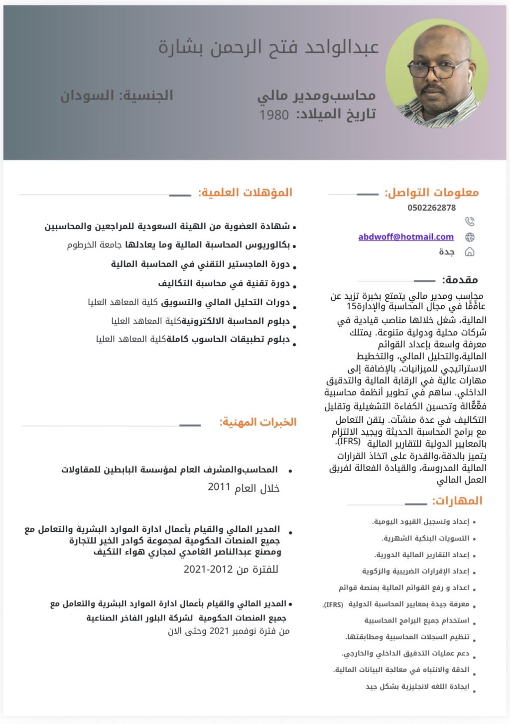 محاسب عام سوداني خبرة عملية في الحسابات والمنصات الحكومية أكثر من عشرة سنوات