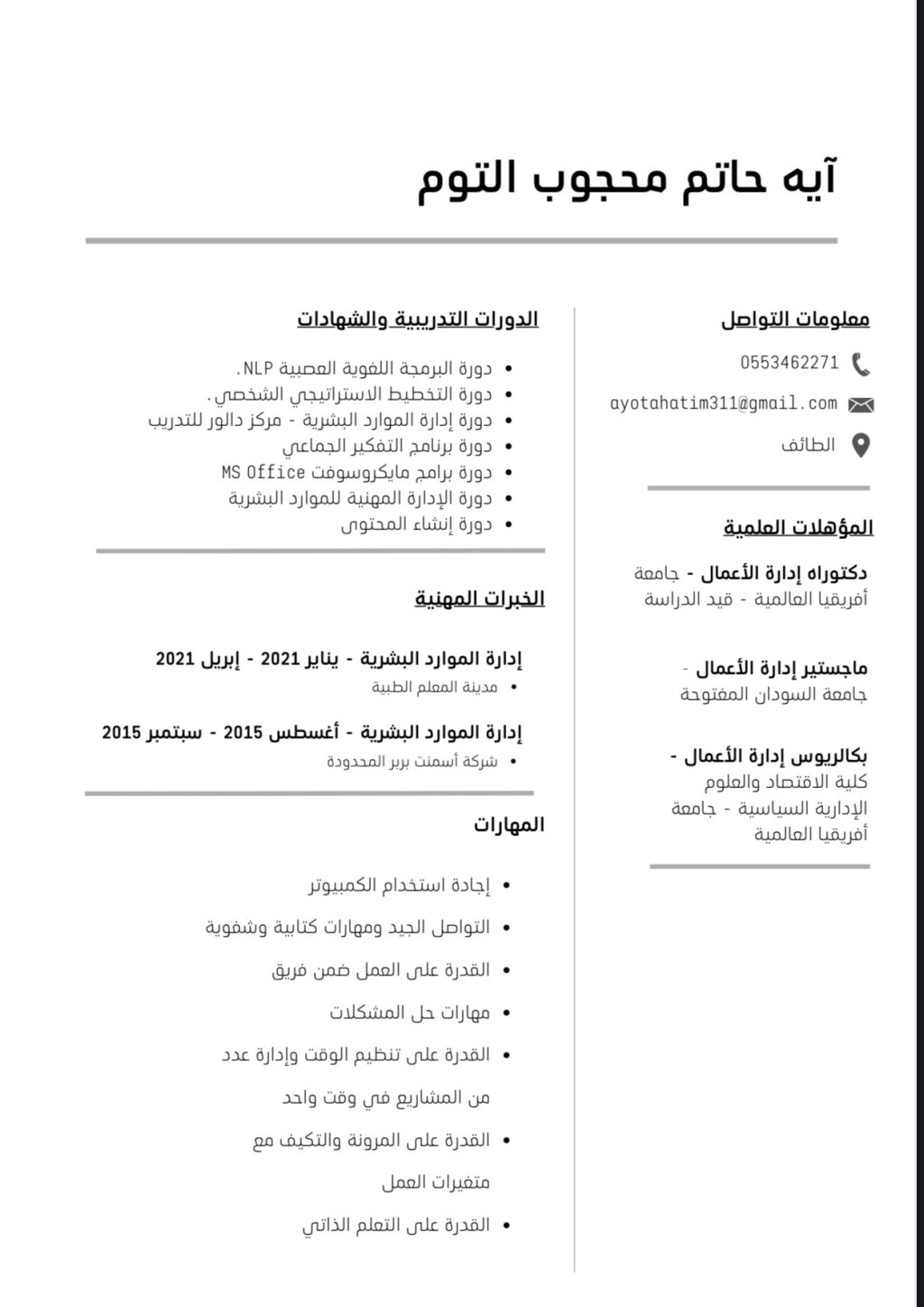 ماجستير إدارة الأعمال ابحث عن عمل بمدينة الطائف الجنسية / السودان