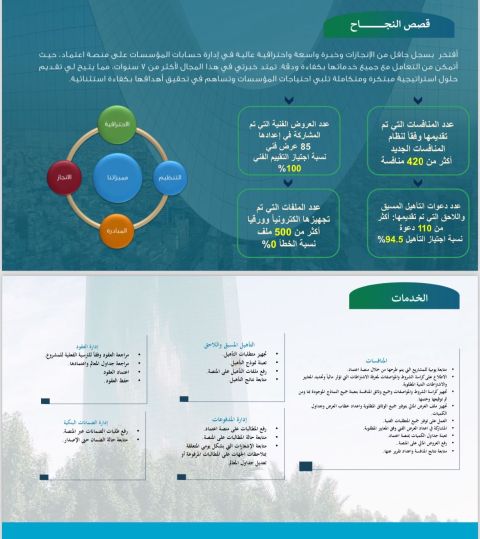 متخصص في إدارة حسابات الشركات والمؤسسات على منصة اعتماد، ومتابعة المطالبات المالية، والمنافسات، واعداد العروض الفنية. أقدم خدماتي اونلاين أو بارت تايم داخل المملكة. خبرة واسعة ودقة في العمل