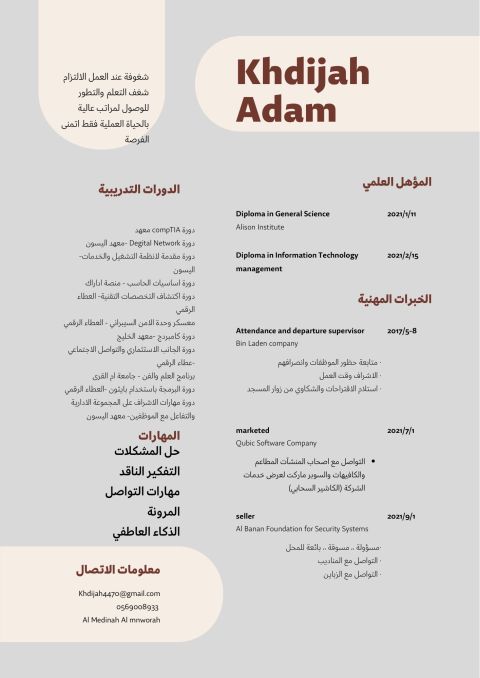 أنا شابة طموحة متحمسة أسعى للحصول على فرصة عمل جيدة في مجال الادارة لكسب الخبرة ضمن بيئة تنافسية لتعزيز قدرتي واكتساب الخبرة ومهارات جديدة وان أكون مسؤوله بما يتماشى مع قيم ومبادئ سوق العمل