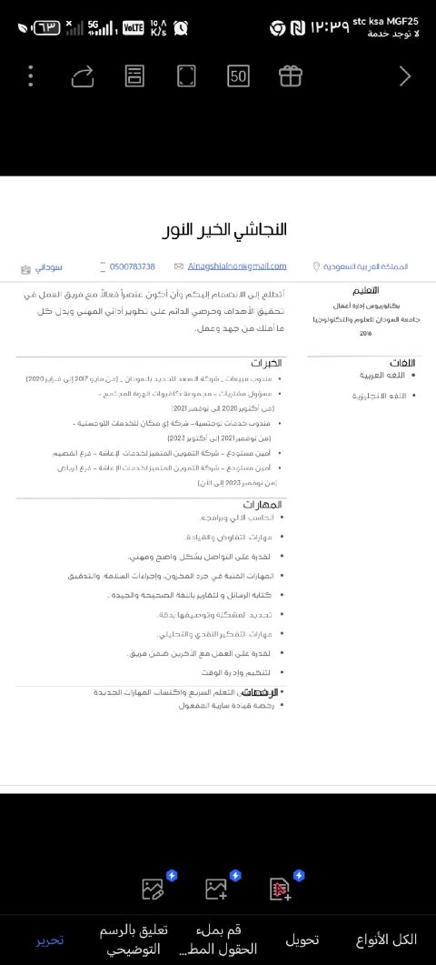 شاب سوداني ابحث عن فرصة عمل مناسبة، لدي استعداد كامل للعمل فورا امتلك التزاما وقدرة على التعلم السريع. متاح للعمل في المجالات التالية المبيعات المستودعات الخدمات اللوجستية أو أي وظائف تشغيلية أو ادارية مناسبة الخبرات خبرة سابقة في مجال المستودعات مجال الاعاشة أو المواد الغذائية وأيضا في مجال الخدمات اللوجستية التشغيلية) اجادة استخدام الحاسب الآلي وبرامجه والتعامل مع العملاء