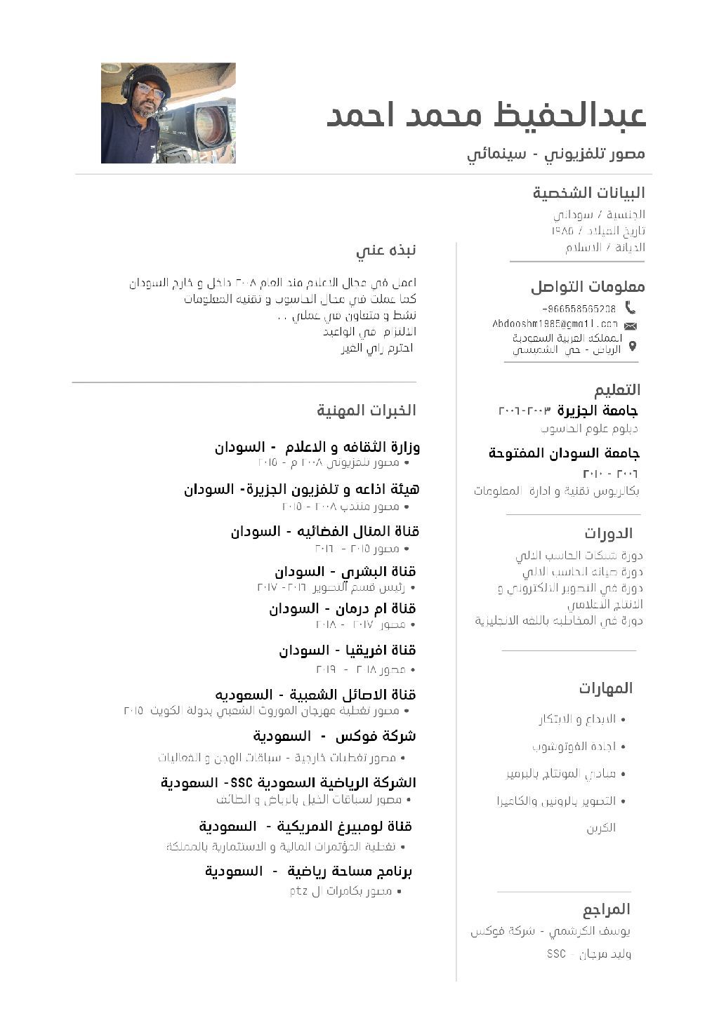 سوداني الجنسية’ ابحث عن عمل مصور داخل الرياض