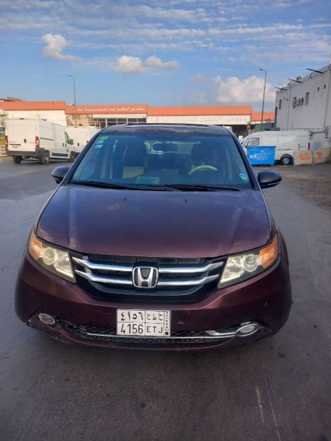 Honda Odyssey 2014 TOURING, used for sale. Automatic transmission, gasoline, mileage 224,000 km. Full options: sunroof, two screens, right turn camera, rear camera, door and trunk control, remote and interior electric opening. Includes a refrigerator that works from the AC for trips and travel. Transmission and engine in excellent condition, accident-free. Inspection and registration are new, ready for transfer. Price: 32,000 SAR, negotiable.