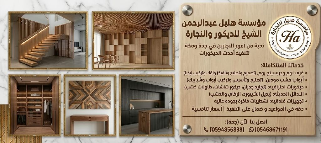 مؤسسة الشيخ للنجارة والديكورات تجهيز فندقية غرف نوم دريسنج روم أبواب مودرن تجليد الجدار ديكور شاشات بديل شيب ورد والرخام والخشب للديكورات والتشطيبات خبرة في تنفيذ أحدث أعمال بجودة عالية تواصل