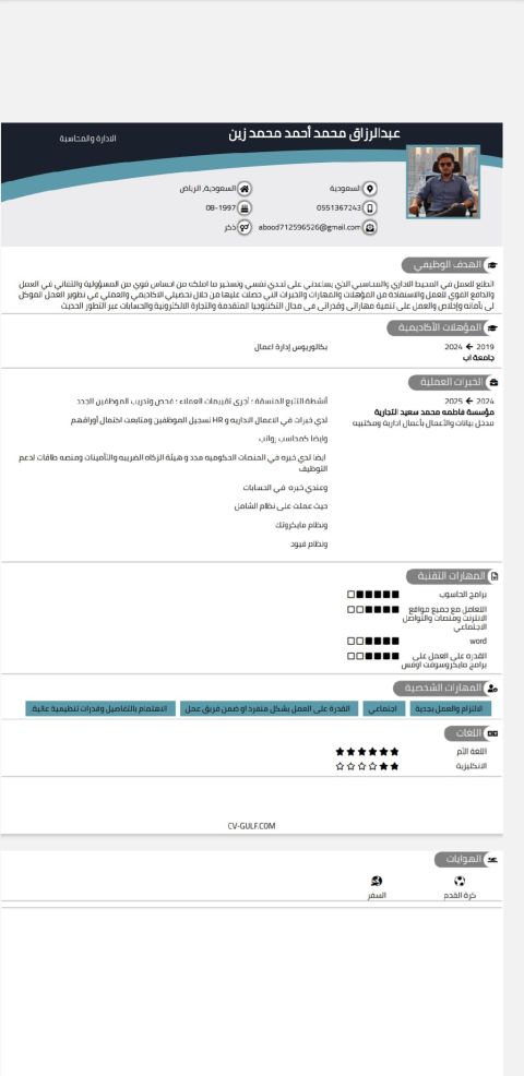 I am looking for an administrative or accounting job. I have experience in administrative work and HR, registering employees and following up on the completion of their papers, and also as a payroll accountant. I also have experience in the government platforms Madad and the Zakat, Tax and Insurance Authority, the Qawi and Ajeer platform, and the Taqat platform for employment support