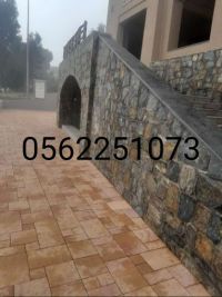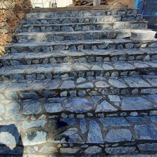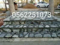Natural stonework, including stonework for walkways, hand - built structures, back - and - forth construction, basins, waterfalls, fountains, farm enclosures, and all related stonework