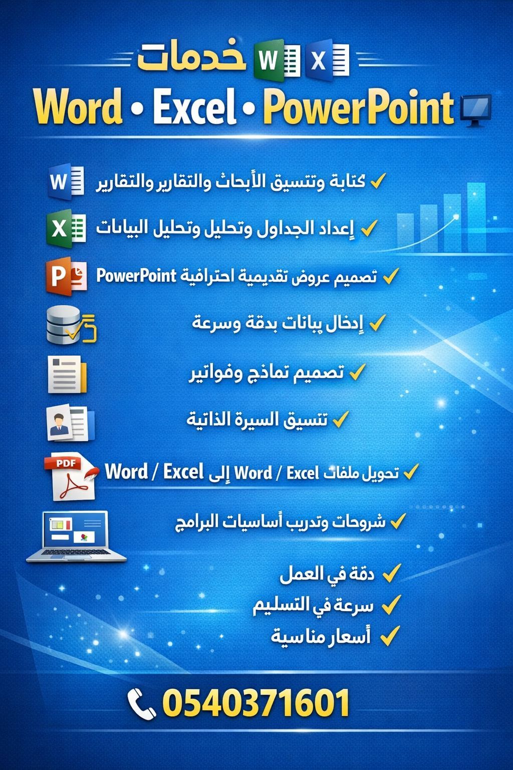 خدمات word عروض Power Point عمل dashboard باحترافية