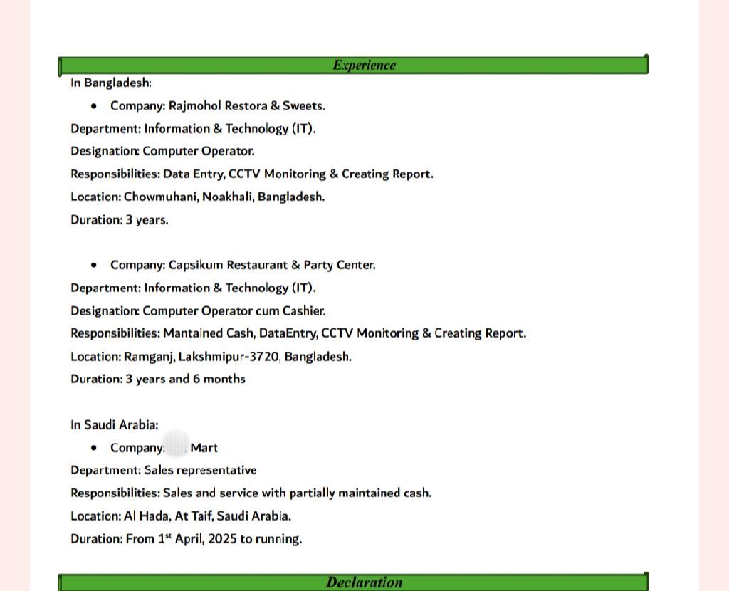 ابحث عن وظيفة مناسبة تتناسب مع خبرتي ومهاراتي. لدي خبرة واسعة في ادخال البيانات وتصفح الانترنت، بالاضافة الى إدارة النقد. امتلك خبرة عملية تزيد عن سبع سنوات في هذه المجالات