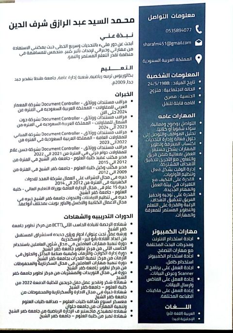 موظف مصري جاهز لنقل الكفالة اعمل في مجالات الاستقبال وادخال البيانات