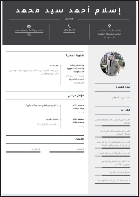 مدخل بيانات علي دراية كاملة ببرامج الأوفيس والأونكس برو المحاسبية إقامة سارية المفعول قابلة للتحويل أحمل رخصة قيادة